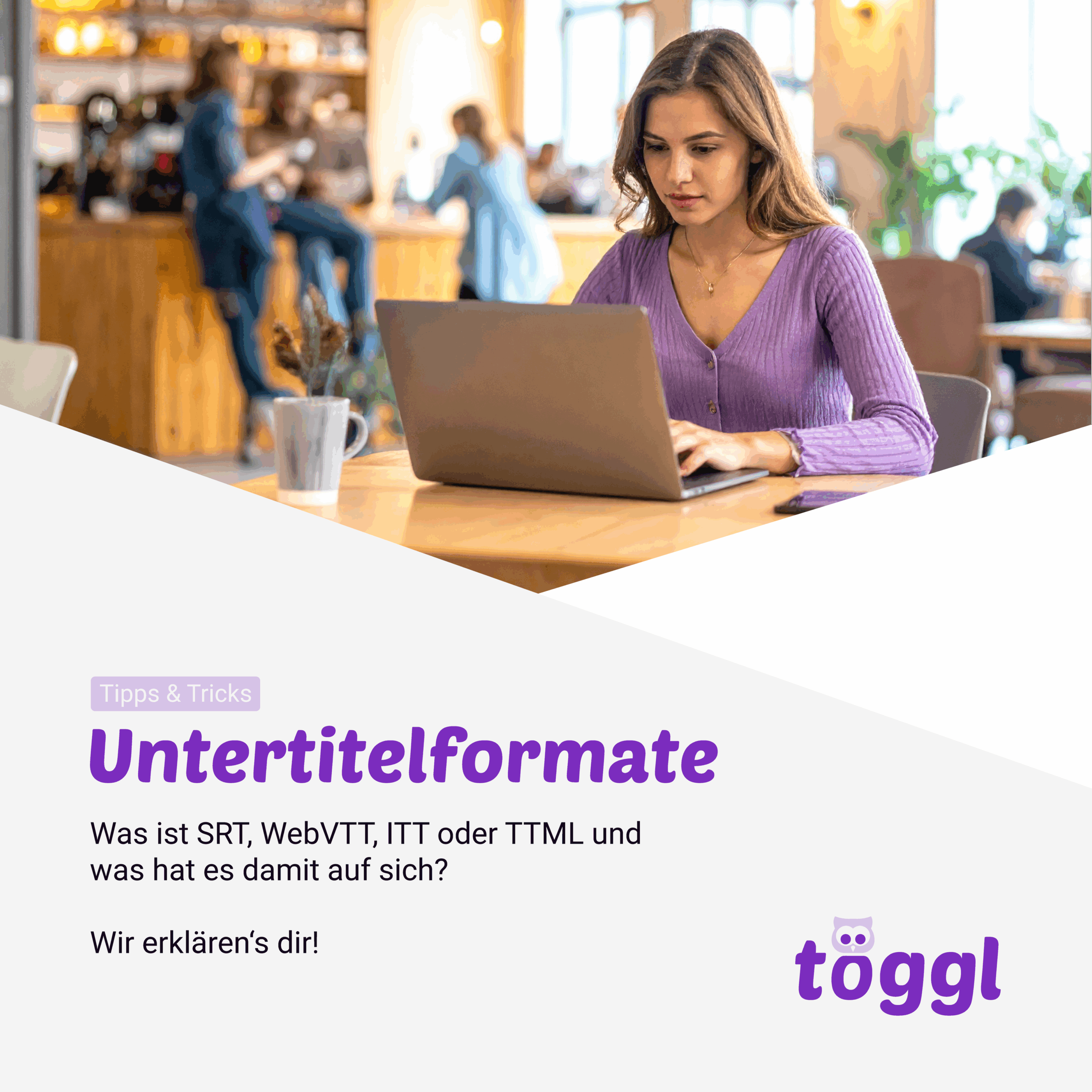 töggl bietet dir die Möglichkeit, den Text als Word oder direkt als Untertitel im gewünschten Format zu exportieren.